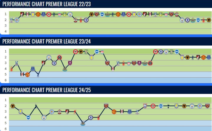 苦涩三连亚? 阿森纳近3个赛季联赛排名走势图